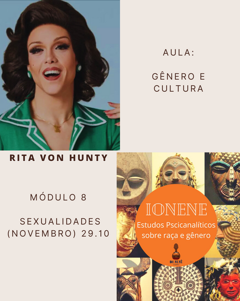 Nesse encontro, vamos encerrar o percurso de formação em psicanalise, e teremos um aula sobre Sexualidades: um dialogo entre a psicanálise e os estudos culturais com a magnifica Rita Von Hunty.
